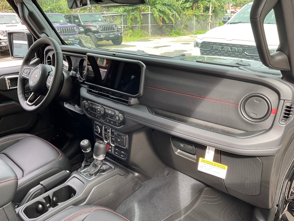 Quick Order Package 24Y Rubicon X: Steel Front Bumper; Alpine Premium Audio System; Integrated Off-Road Camera; USB Host Flip; Blind Spot & Cross Path Detection; Rear View Auto Dim Mirror; Body Color 3-Piece Hard Top; Heated Front Seats; Bluetooth® Wireless Speaker; Integrated Voice Command W/Bluetooth®; Uconnect 5 Nav W/12.3" Display; Auto High Beam Headlamp Control; Universal Garage Door Opener; Power Adjust Nappa Leather Seats; Heated Steering Wheel; ParkSense Rear Park Assist System; Body Color Rubicon Highline Flare; Rubicon Hood Top Decal; MOPAR Hardtop Headliner. Steel Power Dome Hood Package: Power Dome Dual Vented Hood. 17" X 7.5" Machined Wheels W/Black Pockets. Black Clearcoat. MOPAR Spray In Bedliner. MyFlexCare Service Plan. MOPAR All-Weather Slush Mats. **Equipment listed is based on original vehicle build and subject to change. Please confirm the accuracy of the included equipment by calling the dealer prior to purchase.**