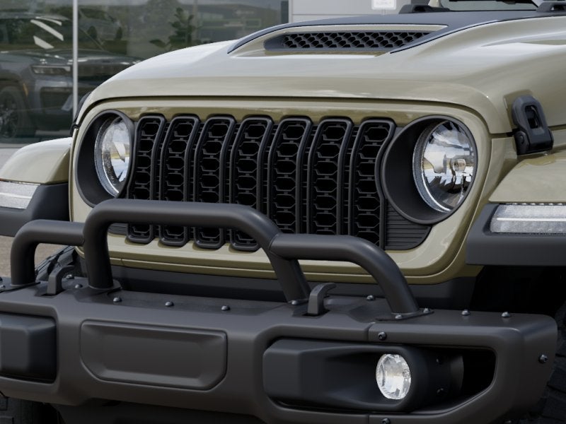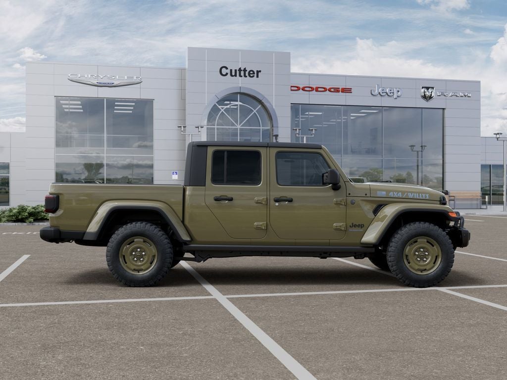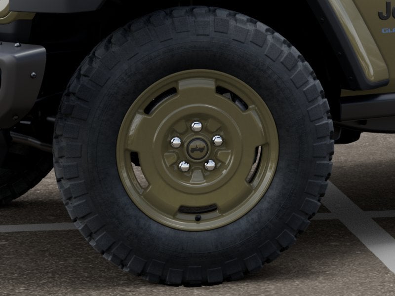 Quick Order Package 24T Willys 41: LED Taillamps; Protection Sill Rails; Willys '41 Retro Edition Gladiator Decal; MOPAR Black Hood Graphic; 4WD Willys '41 Tailgate Decal; MOPAR All-Weather Slush Mats; Willys '41; LT255/75R17C OWL On/Off Road Tires; Body Color Fender Flares (2-Piece); Front Heavy Duty Red Accent Shock Absorbers; Daytime Running Lamps LED Accents; Front LED Fog Lamps; LED Premium Reflector Headlamps; E-Locker Rear Axle; Green Soul Cloth Wrapped Mid-Bolster; Corning Gorilla Glass; Trailer Hitch Zoom; Class IV Receiver Hitch; Security Alarm; Performance Hood; Steel Front Bumper; 17" X 7.5" Fully Painted Wheels; Advanced Brake Assist; Willys Suspension; Heavy Duty Engine Cooling; Automatic Headlamps; Air Conditioning W/Auto Temp Control; 5. 950 lbs GVWR; Deep Tint Sunscreen Windows; MOPAR Triple Hoop Grille Guard; Off-Road Plus Mode; Central ADAS Decision Module (CADM); Willys '41 US Edition U.S. Hood Decal; Full Speed Forward Collision Warning Plus; Rear Heavy Duty Red Accent Shock Absorbers; Front Door Locks 2-Door Passive Entry; 97 MPH Vehicle Max Speed Calibration; Cloth Low-Back Bucket Seats; Cluster 7.0" TFT Color Display; Power Heated Mirrors; Daytime Running Lamp System; Auxiliary Switches; Premium Wrapped Steering Wheel; Sun Visors W/Illuminated Vanity Mirrors. Black 3-Piece Hard Top. MOPAR Hardtop Headliner. 41. MOPAR Spray In Bedliner. MyFlexCare Service Plan. **Equipment listed is based on original vehicle build and subject to change. Please confirm the accuracy of the included equipment by calling the dealer prior to purchase.**